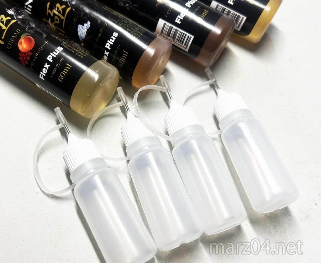 このボトルは最近HiNIC系のリキッドによく使われていますが、通常の60mlボトルよりわずかに細く、ポストインの配送に有利な設計にしてあるのだと私は思っています。