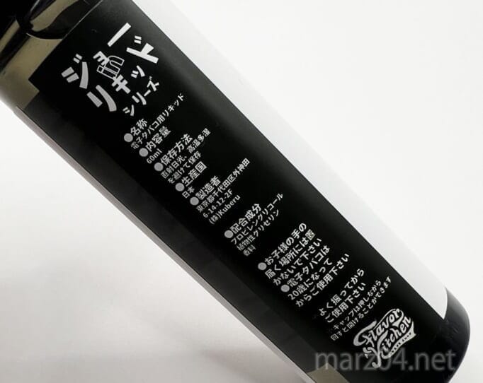 国産リキッドなので記述は全て日本語、そして下にはおなじみのフレキチさんのロゴ。
