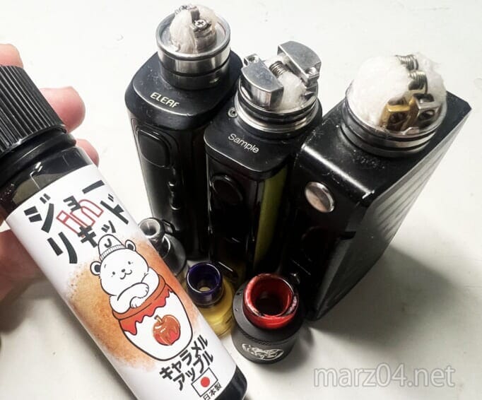 低出力だとアップルの爽やかさが強く、高出力だとキャラメルが強くスイーツ寄りになっていくように感じました。