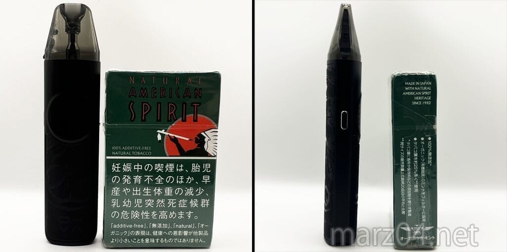 1500mAhという容量はスティック型としては大きめですが、この機種の38w常時運用だと、よく吸う人は丸1日は厳しいかもなといった具合。
