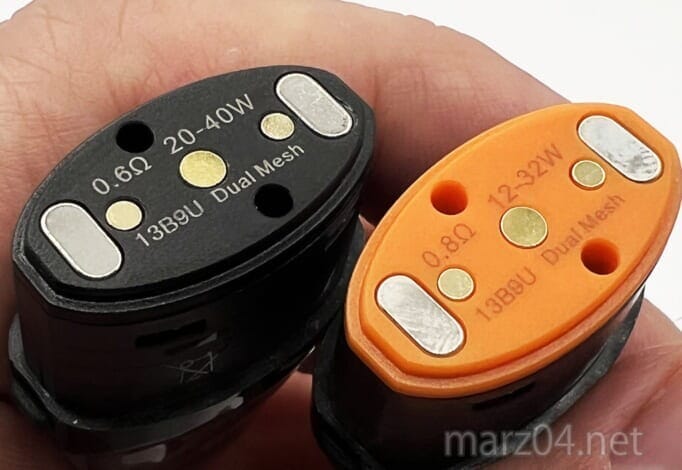 コイルは0.6Ωと0.8Ωの2種が付属。