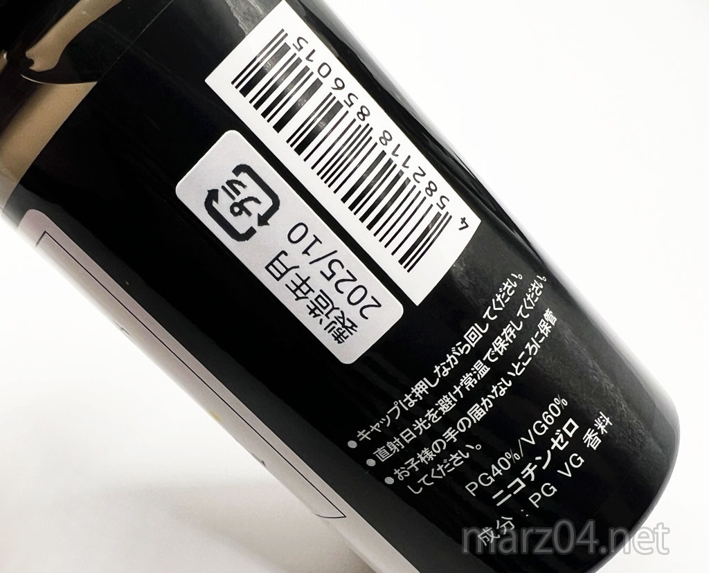 全ての無駄をそぎ落として作成された高コスパのリキッドで、ラベルなども極力シンプルに作られています。