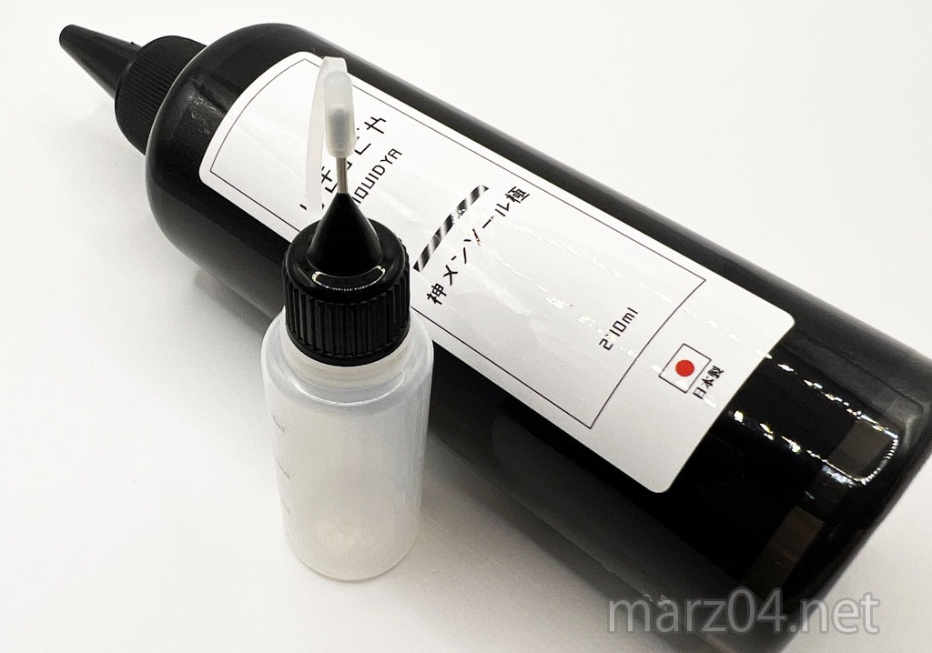 240mlのボトルはノズルも大きめなので、10mlのニードルボトルが付属しています。
