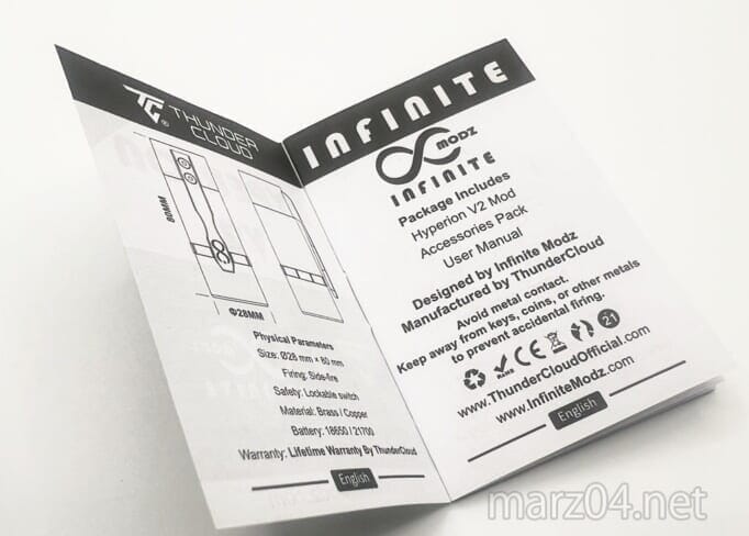 ユーザーマニュアルは英語で記載されていますが、元々単機能なメカニカルModなのでスペックの記載くらいです。