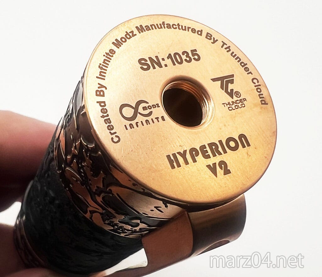 上面、Infinite ModzとThunderCloudのロゴ、そしてシリアルナンバーが刻印されています。