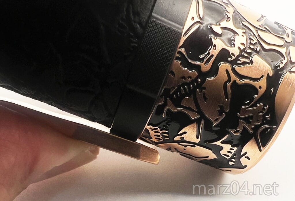 今回のサンプルはCopper Black、エングレービングに黒が入っていて柄が際立っています。
