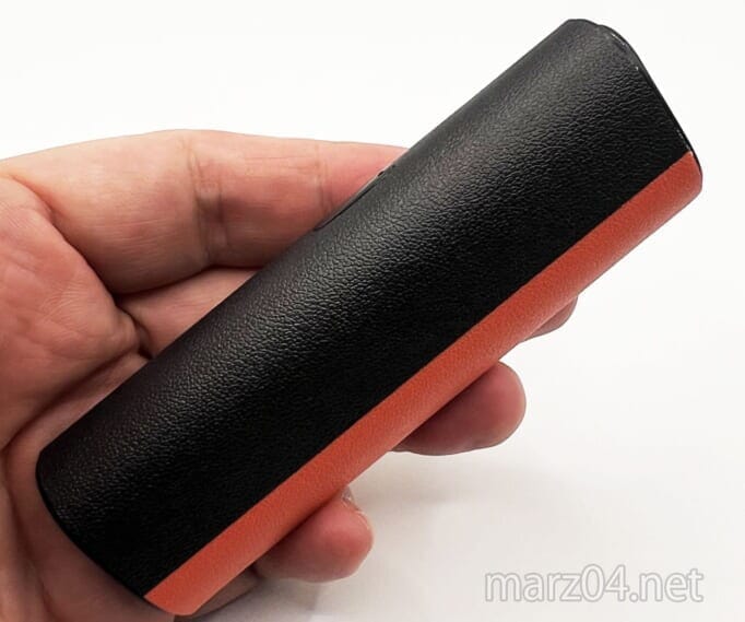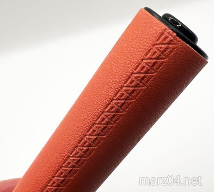 プリント合皮で若干のチープさはありますが、ソフトな素材で握り心地は良いですね。