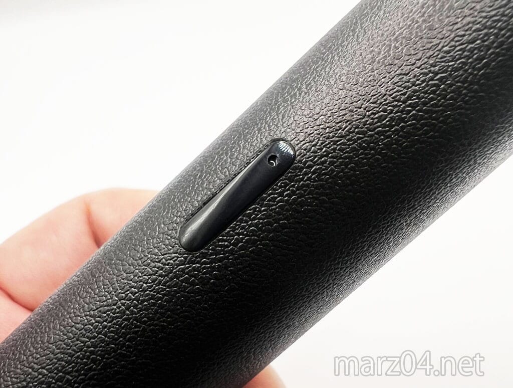 側面に露出しているのはこのボタンとLEDインジケーターのみという超シンプルデザイン。