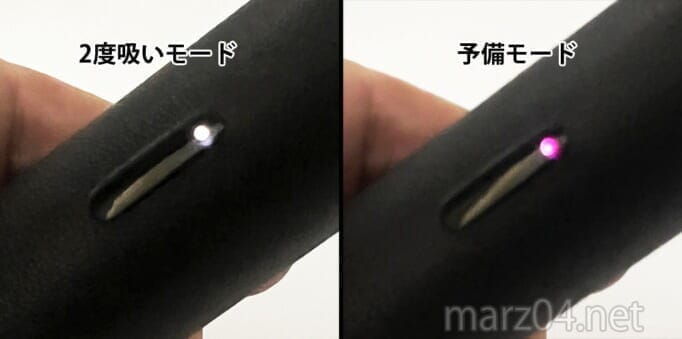 LEDが白く光ったら2度吸いモード、紫に光ったら予備モードです。