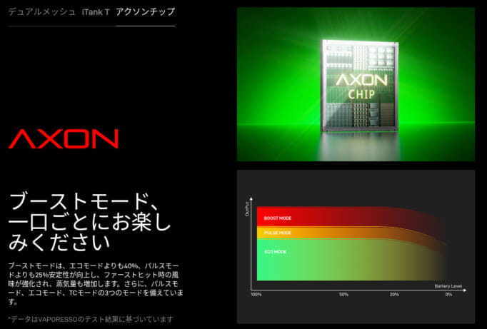 VaporessoさんのModはデザインの良さだけでなく、Axonチップの性能の良さでも定評があります。