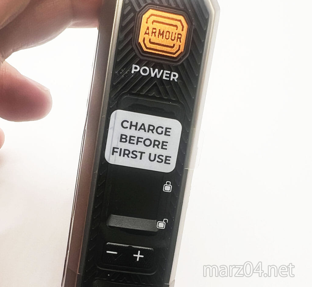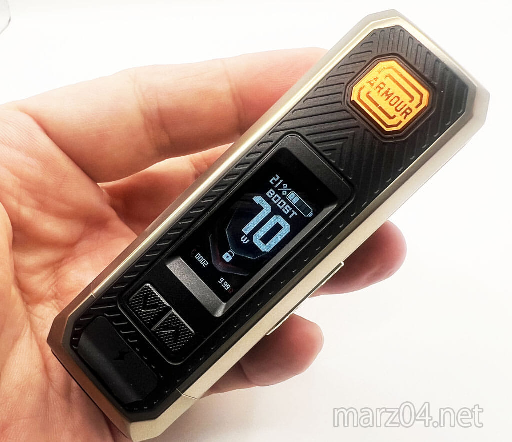 VaporessoさんのModって、シュッとしたオシャレなデザインが多いイメージなのですが、最近のARMOURシリーズはかなりゴツめのデザインですね、