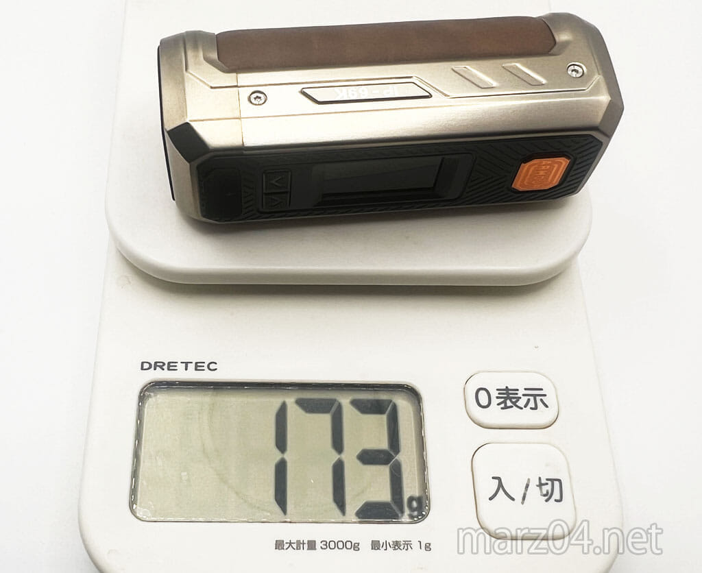 カタログスペックの重量はキットの付属アトマイザー込みのようで、Mod単体だと173gでした。